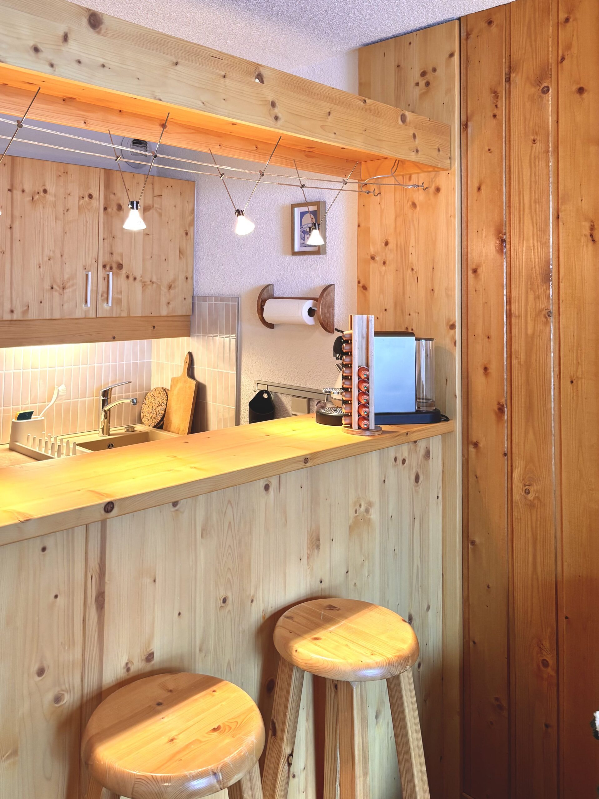 L’appartement dispose de tout le nécessaire pour un séjour confortable : vraie cuisine équipée, espace de vie convivial, coin nuit cosy, rangements malins pour le matériel de ski et petites attentions qui simplifient le quotidien.